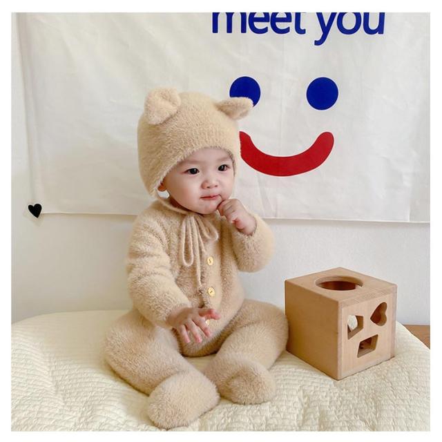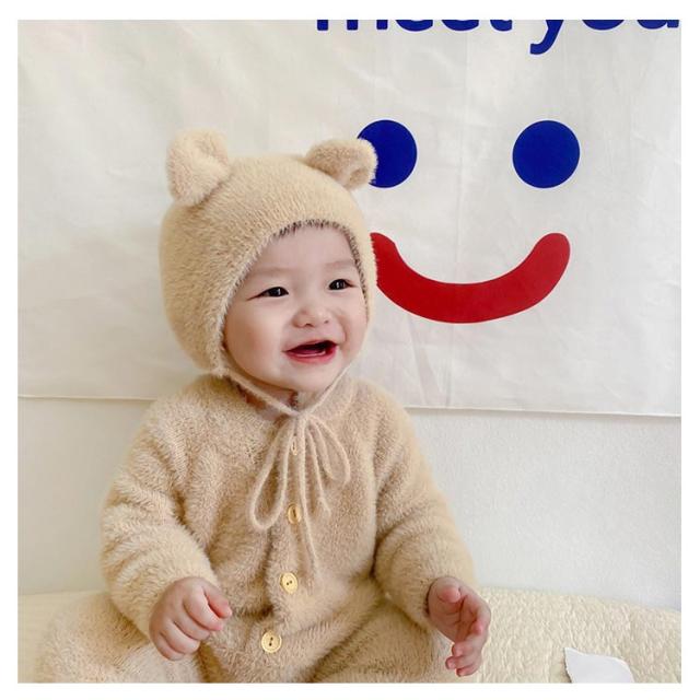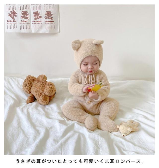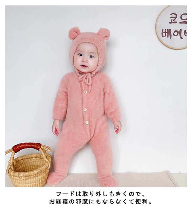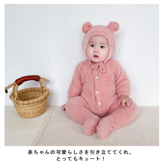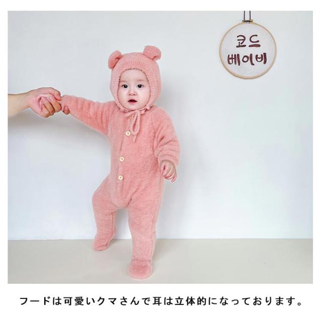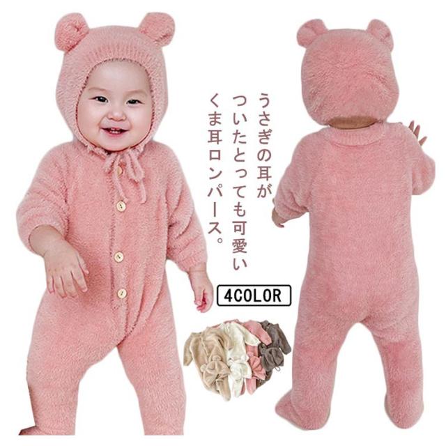 カバーオール 女の子 着ぐるみ ツナギン おしゃれ アニマルぎ ベビー服 ロンパース くまみみ 赤ちゃん 秋冬 前開き 長袖 ジャンプスーツ ベビー服 カバーオール 男の子 かわいい フリース もこもこ クマ くまみみ