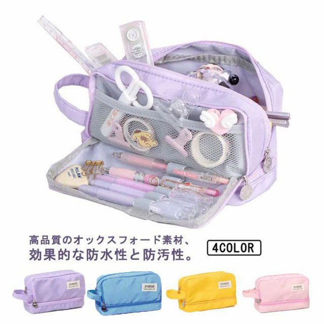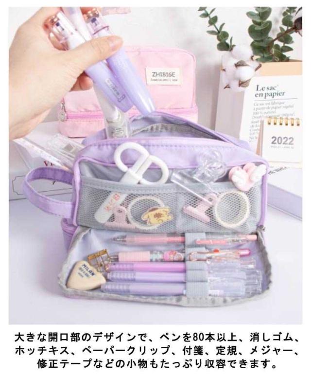 高校生 筆箱 ペンケース 大容量 中学生 収納ポーチ 筆箱 おしゃれ 小学生 防水 ペン80本収納可能 かわいい 韓国 女の子 小物入れ シンプル 多機能 大人 大学生 メッシュポケット