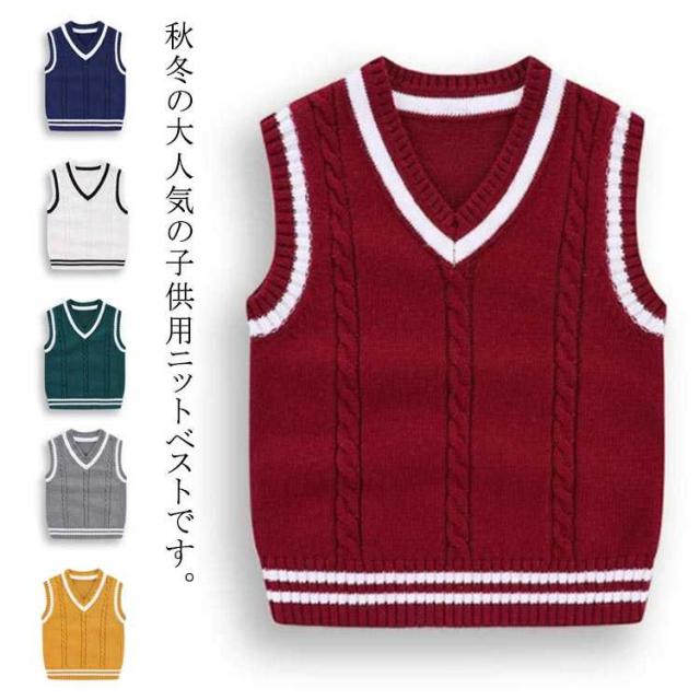 ジュニア服 通園 スクールベスト キッズ服 ニットベスト 制服 全8サイズ! コットン ベスト Vネック ニットベスト 女の子 男の子 綿 ニットアウター ニットトップス 保温 カジュアル 防寒 軽量 フォーマル 子供服 通学 大きいサイズ 子供用 キッズ