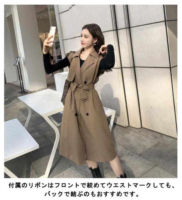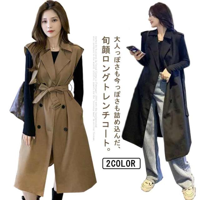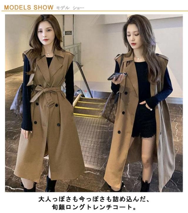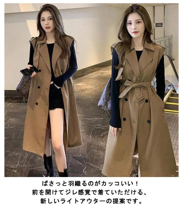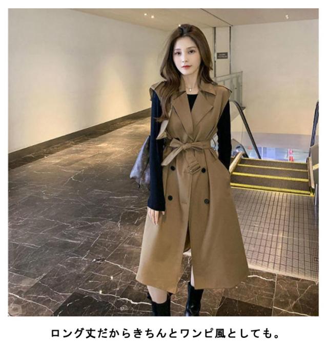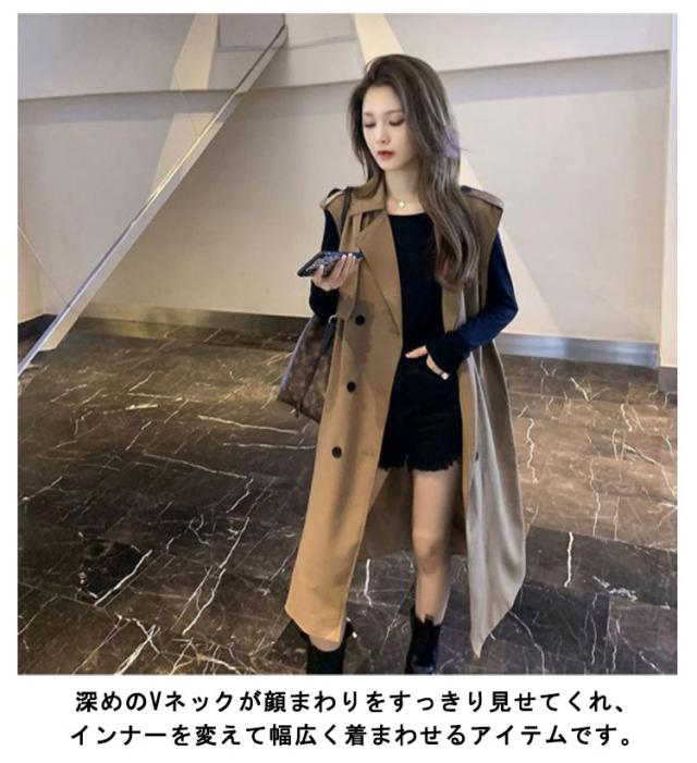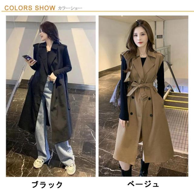 無地 40代 50代 トレンチコート ノースリーブ ロングコート 薄手 裏地付き Vネック 大人 ベスト 韓国風 ジレ 通勤 オフィス レイヤード コーデ 【送料無料】コート シンプル 大きいサイズ 20代 30代 レディース