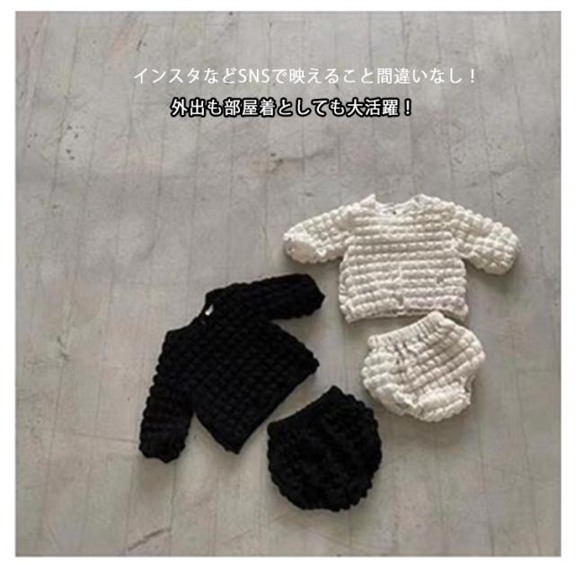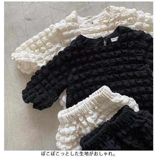| ぽこぽこが可愛いポップコーンセットアップです。 長袖トップスとブルマのセット。 ぽこぽこっとした生地がおしゃれ。 外出も部屋着としても大活躍! 幼稚園、保育園、通園、通学、休日のお出かけ、普段着、お家でのリラックスウエアとしてもおすすめです。 インスタなどSNSで映えること間違いなし! | |