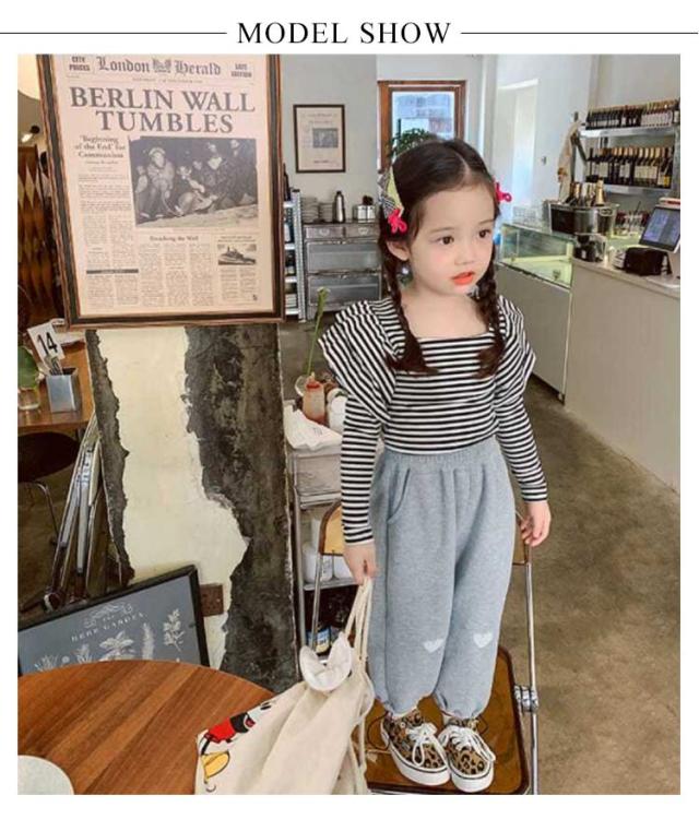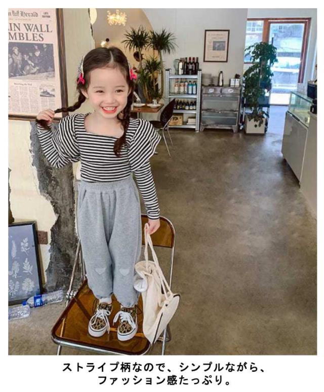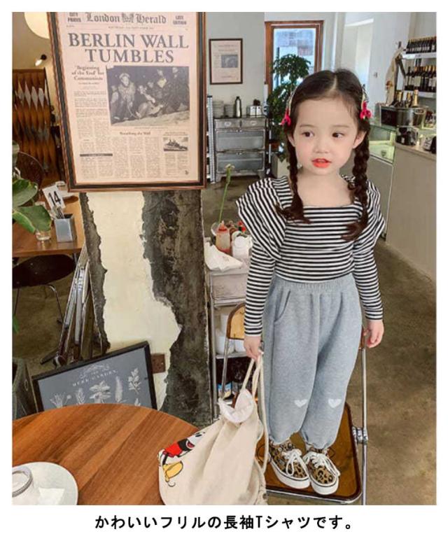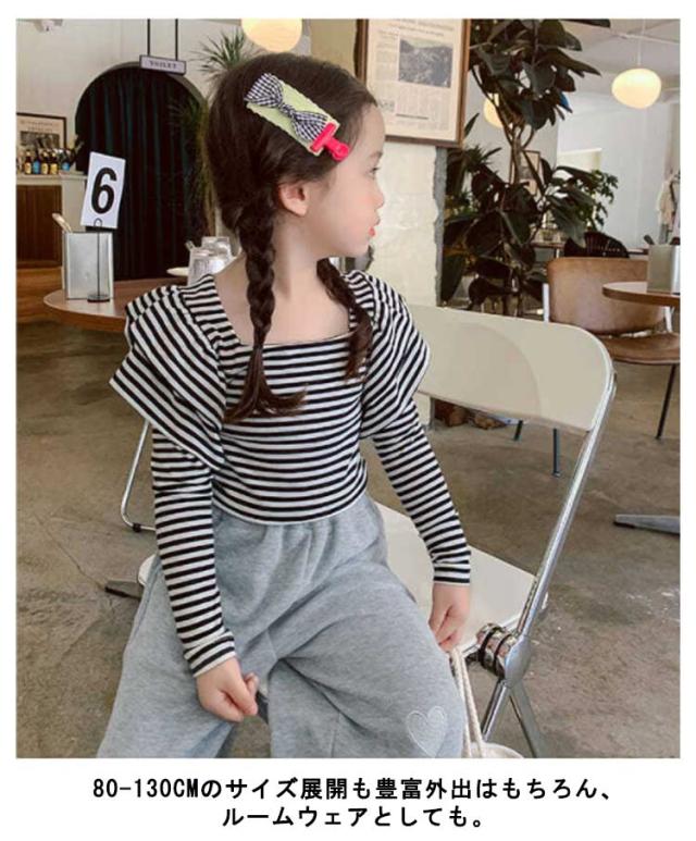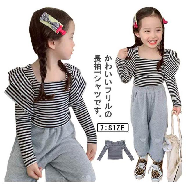 カットソー 長袖トップス 110cm 長袖 子供服 こども服 キッズ 子ども服 ボーダー柄 女の子 肩フリル 女児 スクエアネック おしゃれ かわいい 90cm 100cm 140cm 120cm 130cm Tシャツ