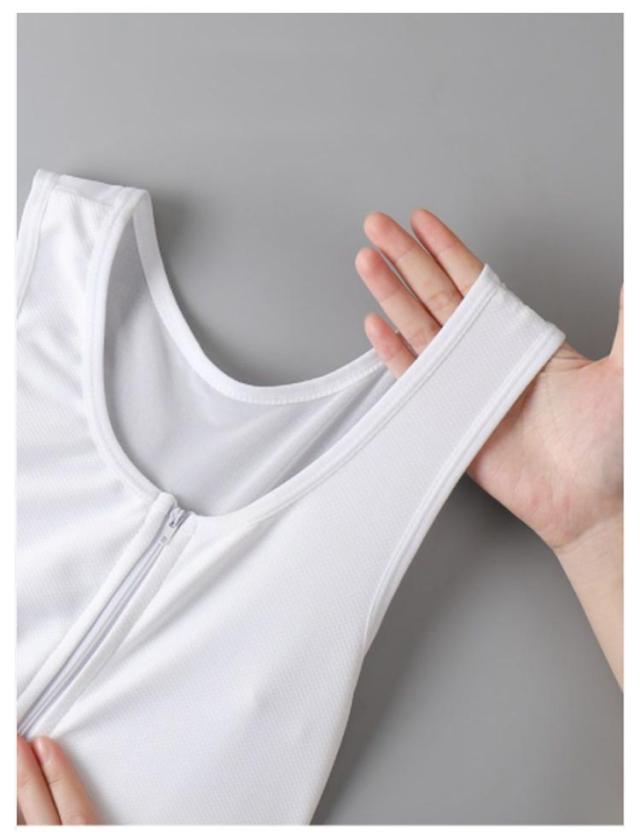 | フロント部分をジッパーで開けることができる、スポーツブラです。 ジッパー部分は布で覆われており、直接肌に引っかからないようになっているので安心。 脱ぎ着もしやすく、汗をかいてもほぼ不快感なく外していただけます。 シンプルなデザインがよりスタイリッシュさを引き立たせてくれます。背中は肩甲骨の動きを邪魔せず動きやすいデザインに。 | |