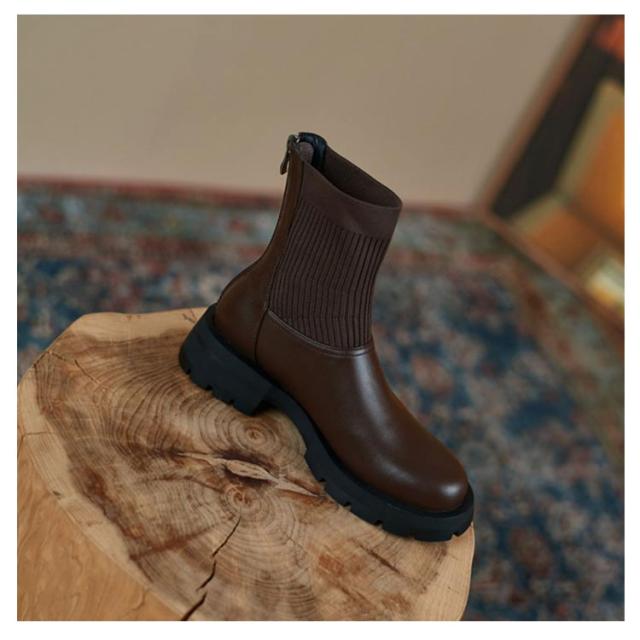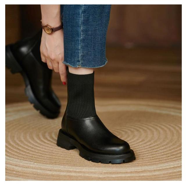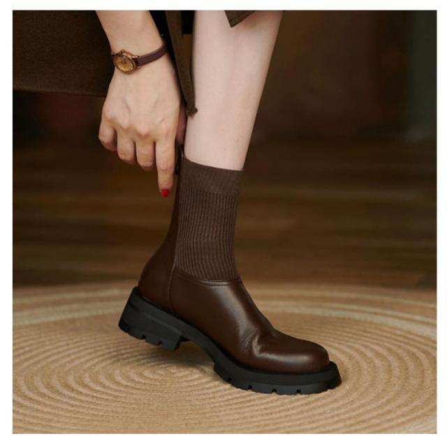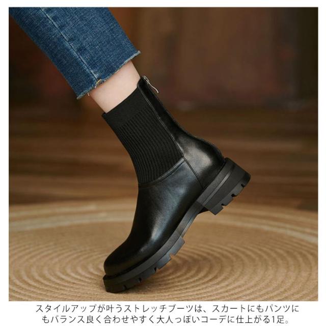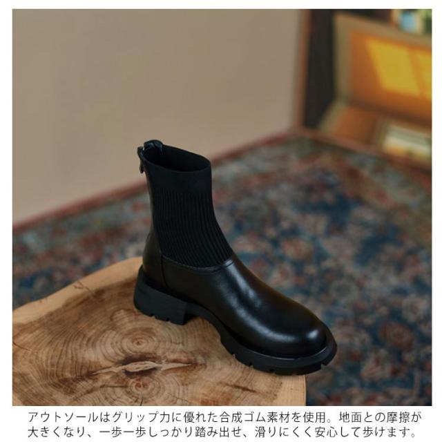 | 長く履けるデザインのショートブーツ ブーツ筒周り部分はニットリブ仕様、足の動きにぴったりフィットしやすく、脚長効果やほっそりと見せる効果を持っています。 スタイルアップが叶うストレッチブーツは、スカートにもパンツにもバランス良く合わせやすく大人っぽいコーデに仕上がる1足。 アウトソールはグリップ力に優れた合成ゴム素材を使用。地面との摩擦が大きくなり、一歩一歩しっかり踏み出せ、滑りにくく安心して歩けます。 | |