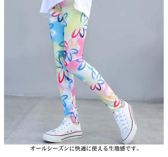 スパッツ 春 カラフル キッズ 星柄 冬 レギパン 可愛い 総柄 夏 ウエストゴム レギンス フラワー パンツ スター ボトムス おしゃれ 女の子 花柄 秋 100 10分丈 9分丈 130 110 120 160cm 140 150 薄手 ジュニア 子供服