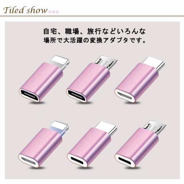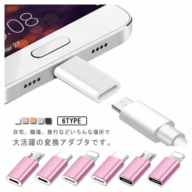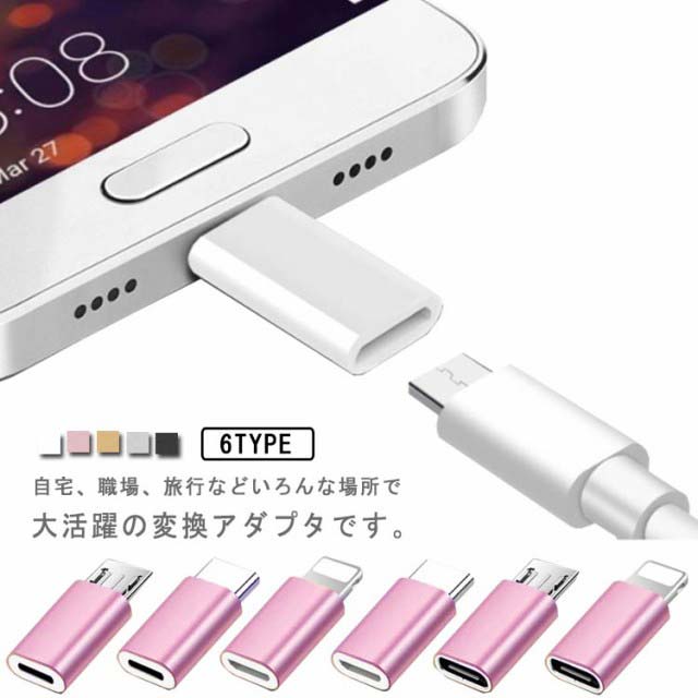 Android/iPhone スマホ用 2個セット Lightning 変換アダプタ 軽量 出張 テレワーク 小型 データ転送 急速充電 コンパクト 在宅 Type-C オフィス MicroUSB