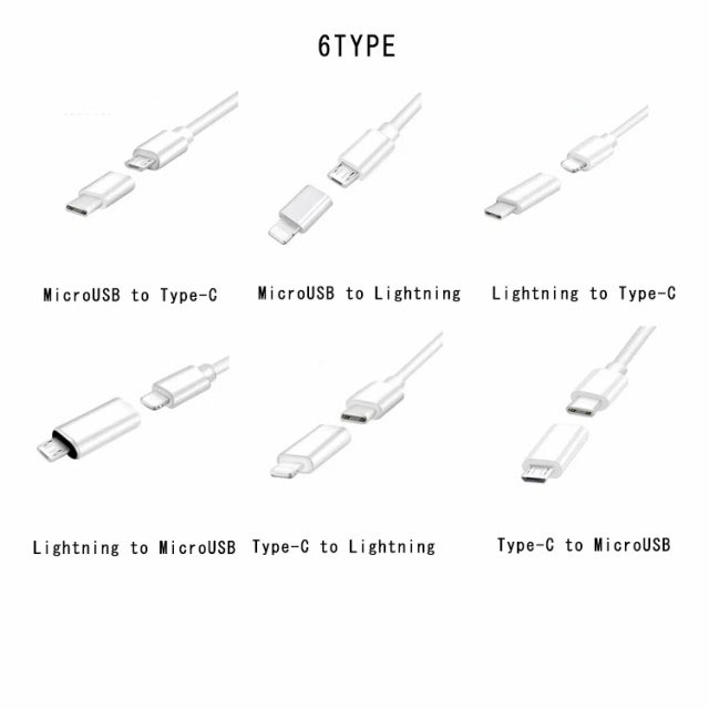 | サイズ | MicroUSBtoType-C MicroUSBtoLightning LightningtoType-C LightningtoMicroUSB Type-CtoLightning Type-CtoMicroUSB |