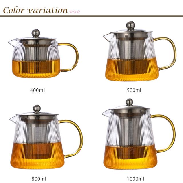 紅茶ポット 茶こし付 業務用 落ちにくい 麦茶 直火可 透明感 花茶 ティーポット フルーツティー 茶ポット 茶器 お洒落 耐熱ガラス 飲食店 お店用 家庭用 ティーパーティ 400ml/500ml/800ml/1000ml 急須