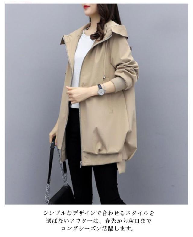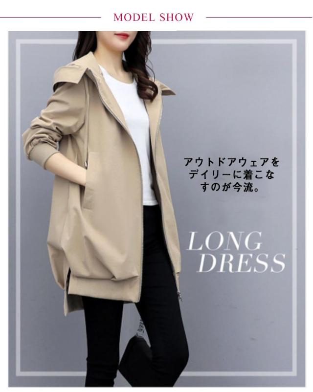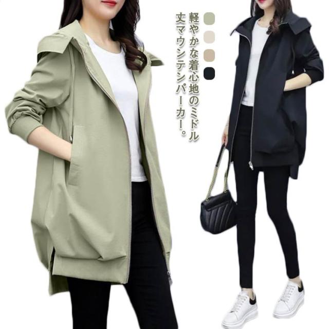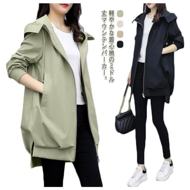 ロング丈 マウンテンパーカー 長袖 レディース フードあり 裏地あり ジップアップ コート アウター ジャケット 通勤