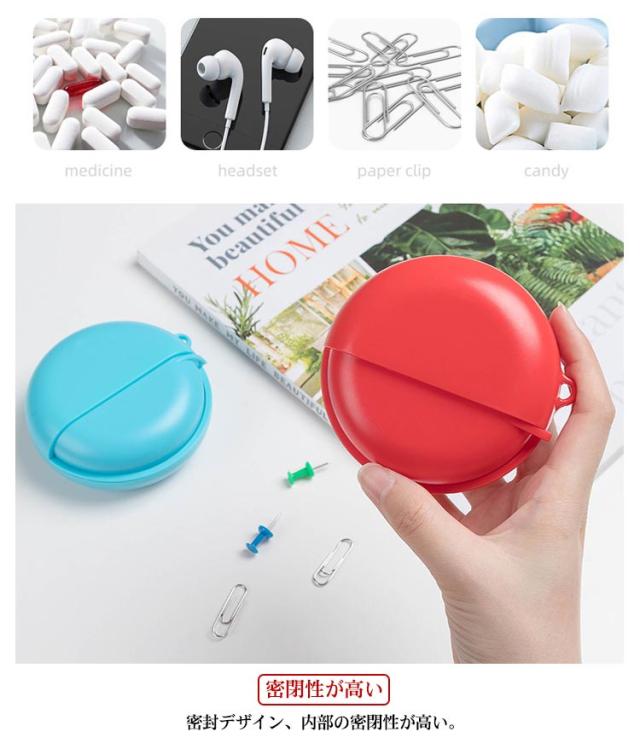 | ●高品質素材 赤ちゃんのおしゃぶりにも使用されている環境に優しい安全素材を採用してます。 あなたの大切な薬をより安全安心に保護されます。 ●密閉性が高い 密封デザイン、内部の密閉性が高い。 ●回転スライド式 フタの開閉が滑らかで、片手で開け閉めできます。180度開閉でき薬を出し入れやすいです。 ●仕切り/多機能収納 本体は仕切りに分かれており、内容物は別々に収納できます。 錠剤、タブレット、カプセルなどの固形薬と保健品に適用されます。 その他アクセサリー.パーツ.指輪.首輪.釣り具などの小物も収納可能です。 ●軽量/携帯便利 ポケットに入れても邪魔にならないスリムな形状により、ごわついたり、かさばったりする心配もご無用です。 軽量でコンパクト、会社や学校、旅行先の外出時にも携帯できます。 | |