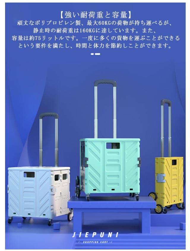 買い物 台車 フタ付き 折りたたみ式 360°回転 4輪静音キャスター 買い物カート キャリーカート 大容量75L コンテナカート 運動会 アウトドア 運搬 ショッピングカート 釣り BBQ 海水浴 腰掛け 持ち運びやすい 軽量