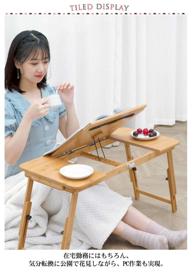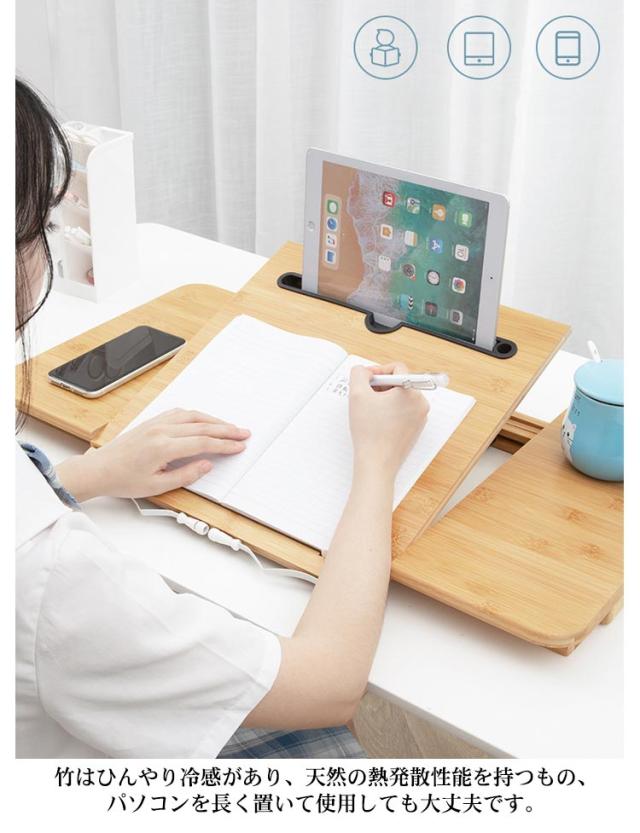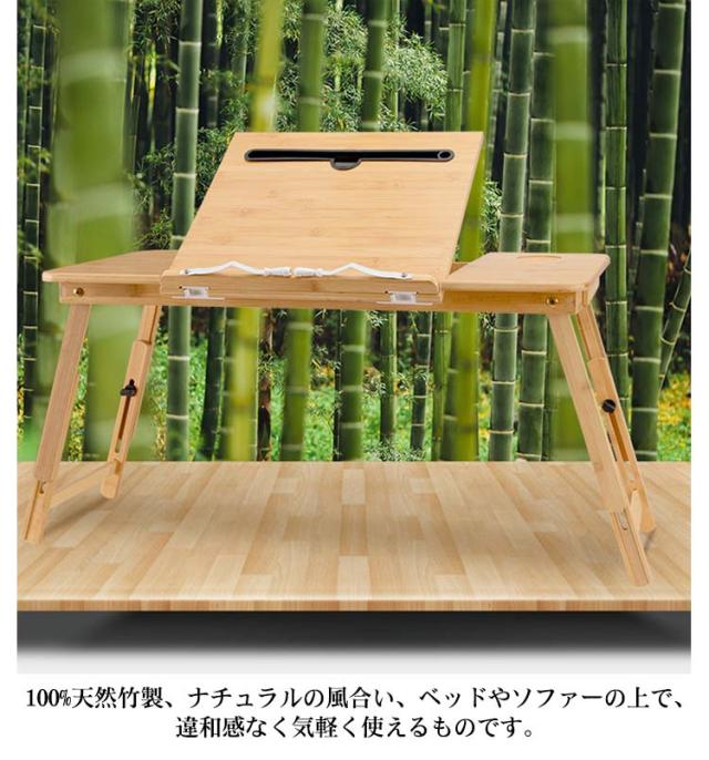 | 特徴:持ち歩き、折りたたみ式、タブレットホルダー機能、高さ調節可能 在宅勤務にはもちろん、気分転換に公園で花見しながら、PC作業も実現、 100%天然竹製、ナチュラルの風合い、ベッドやソファーの上で、違和感なく気軽く使えるものです。 竹はひんやり冷感があり、天然の熱発散性能を持つもの、パソコンを長く置いて使用しても大丈夫です。 | |