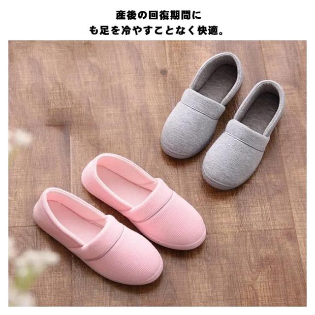 | ソフトな履き心地に安心の防滑ルームシューズ。 足を優しく包む綿素材、通気性・吸湿性に優れ、さらっと快適◎ 柔らかいTPR素材、足の痛みや疲労を軽減します。 脱げにくく、むくんだ足にもフィットするので妊婦さんにおすすめ。 産後の回復期間にも足を冷やすことなく快適。 かかと付きで入院する時も重宝する間違いなしです。 | |