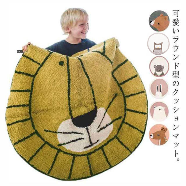 アニマル柄 ラウンドマット イブルマット ラウンドラグ ラグマット マット インテリア ラウンド型 ラグ 丸型 ウサギ すべり止め ズレない 動物 カーペット ライオン くま 円形 コアラ かわいい お昼寝マット