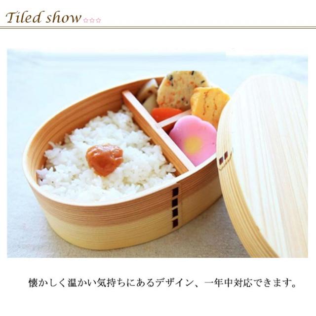 | ナチュラルな曲げわっぱお弁当箱 懐かしく温かい気持ちにあるデザイン、一年中対応できます。 木製だから、炊き立てご飯のふっくらもちもちを保ち美味しいご飯を味わうことが出来ます。冷めたご飯もとっても美味しいですよ♪ 単層は僅か150g、オフィスや学校など普段の持ち歩きにも最適な軽量弁当箱。 高校生の女子から一般男性まで選べる2サイズを用意して、ニーズに合わせて選択できます。 | |