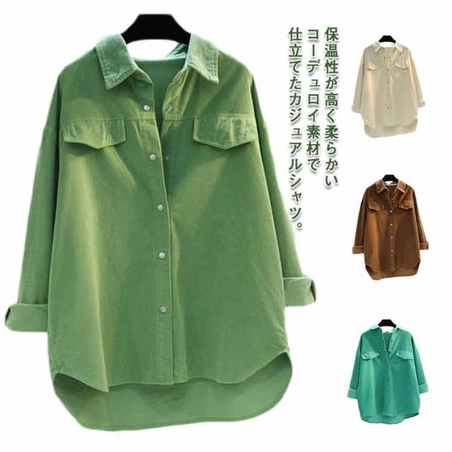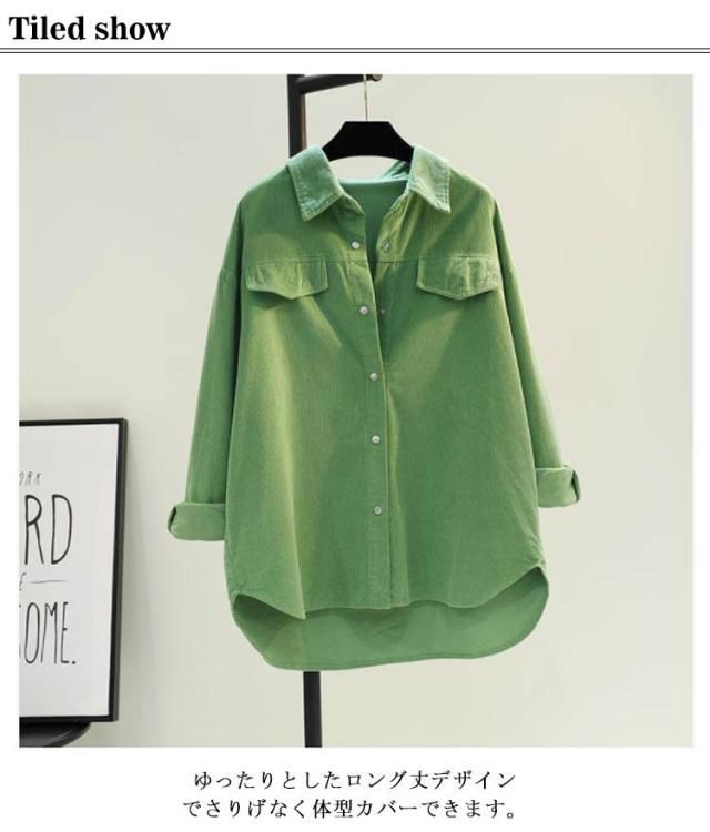 ブラウス 全4色×6サイズ!コーデュロイシャツ ロング丈 レディース ロングシャツ カジュアルシャツ シャツジャケット シャツ 羽織り レディース 上着 春服 秋服 秋冬 ライトアウター ロング丈 ゆったり トップス