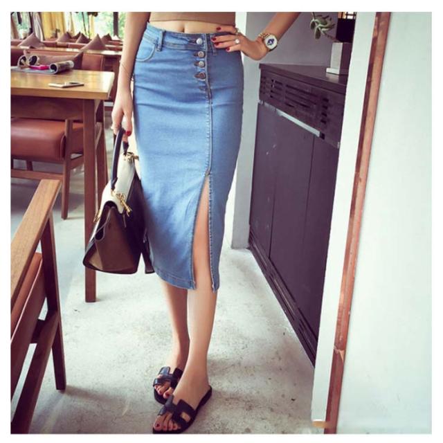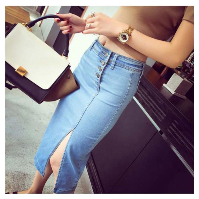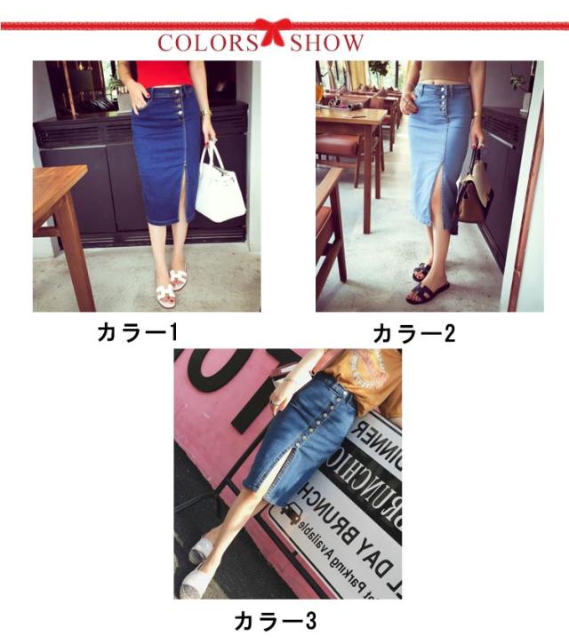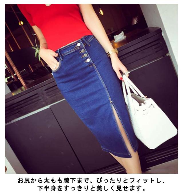 送料無料 スリット デニムスカート スリットスカート ポケット付き ペンシルスカート ロング タイトスカート スカート デニム ミモレ丈 きれいめ ストレッチ 大人 送料無料 コーデ ハイウエスト