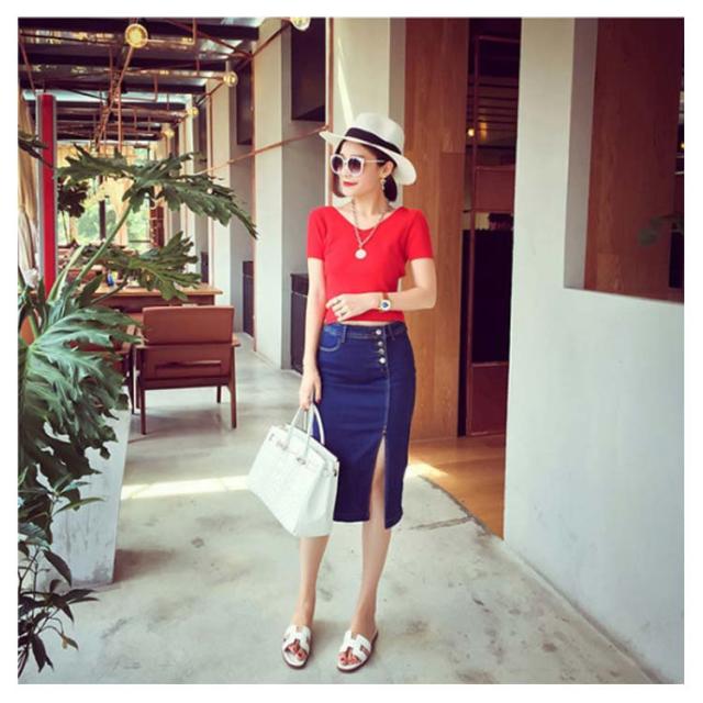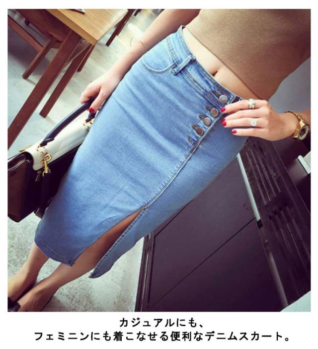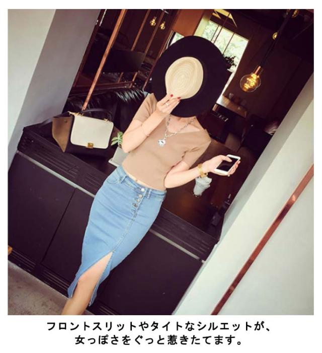 | カジュアルにも、フェミニンにも着こなせる便利なデニムスカート。 フロントスリットやタイトなシルエットが、女っぽさをぐっと惹きたてます。 お尻から太もも膝下まで、ぴったりとフィットし、下半身をすっきりと美しく見せます。 ゴワゴワしないデニム生地でストレッチ性もあるので穿き心地もバツグンです。 スリットが入っていて色気がまします!セクシーで大人の女性にお勧めです。 | |