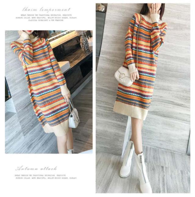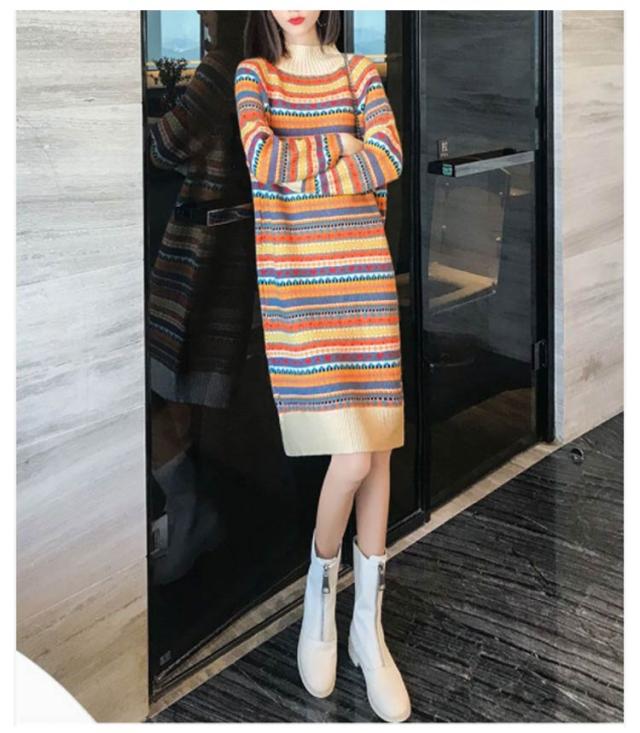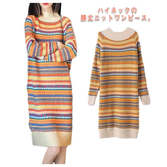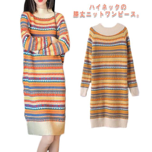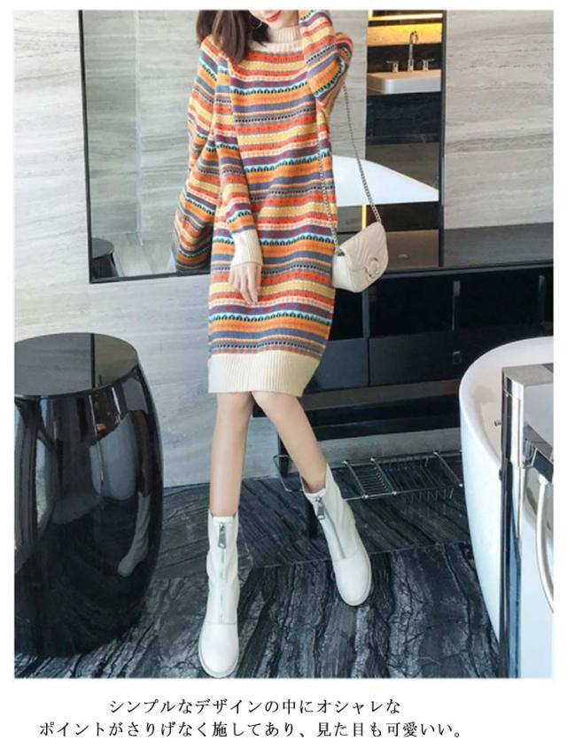 秋 冬 タートルネック 秋冬 長袖 おしゃれ ワンピース 30代 ロングニット チュニック タートルネック 長袖ワンピ ミニワンピ 大人 上品 20代 ワンピース 40代 ニット フェミニン S M ボヘミアン風