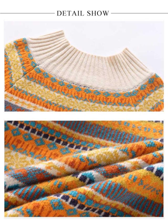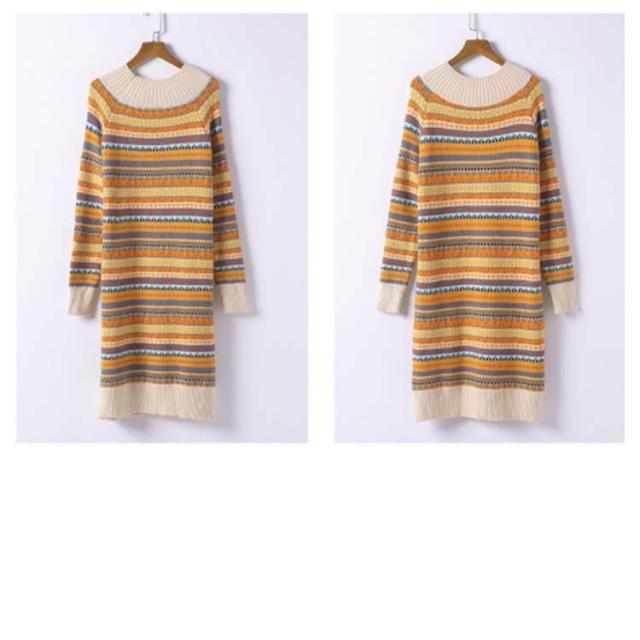 | ハイネックの膝丈ニットワンピース。 幅広い年代で着られるおしゃれなボヘミアン風デザイン。 シンプルなデザインの中にオシャレなポイントがさりげなく施してあり、見た目も可愛いい。 しっかりした生地で型崩れもしない、チクチクもしない肌に優しいタッチ感。 少し腕の部分がキュッとしていた為、少しゆったり着たい場合、サイズアップをオススメ。 | |