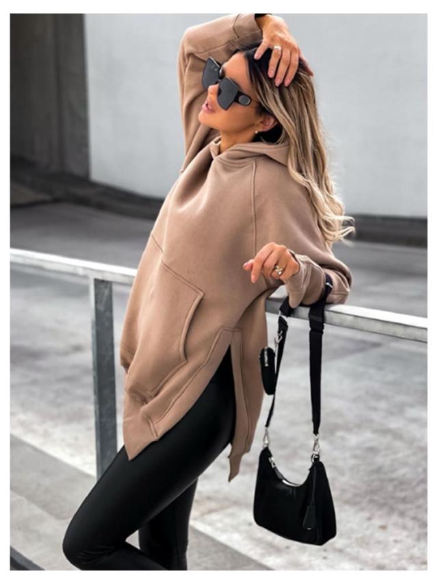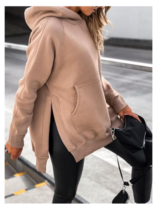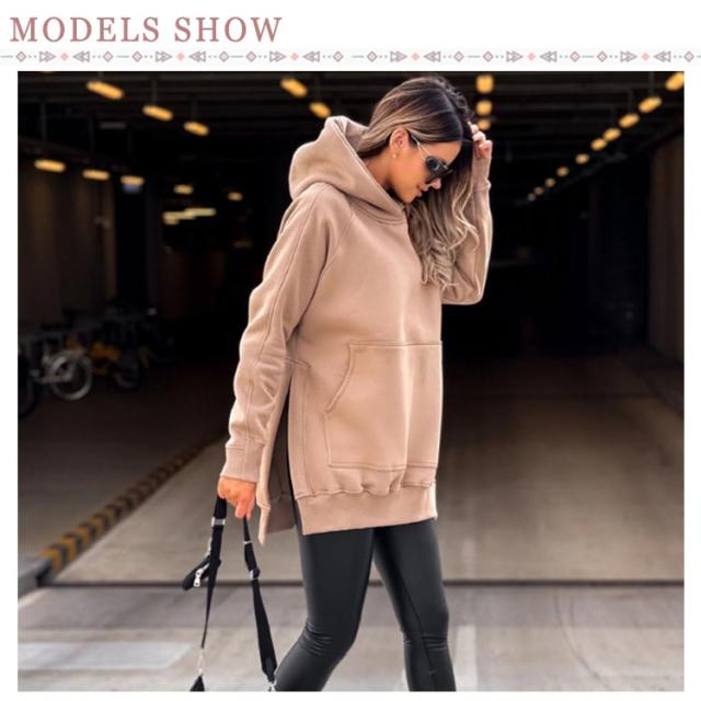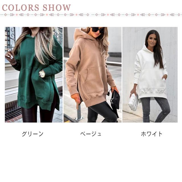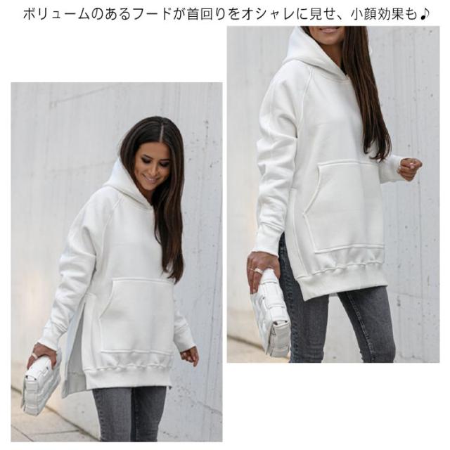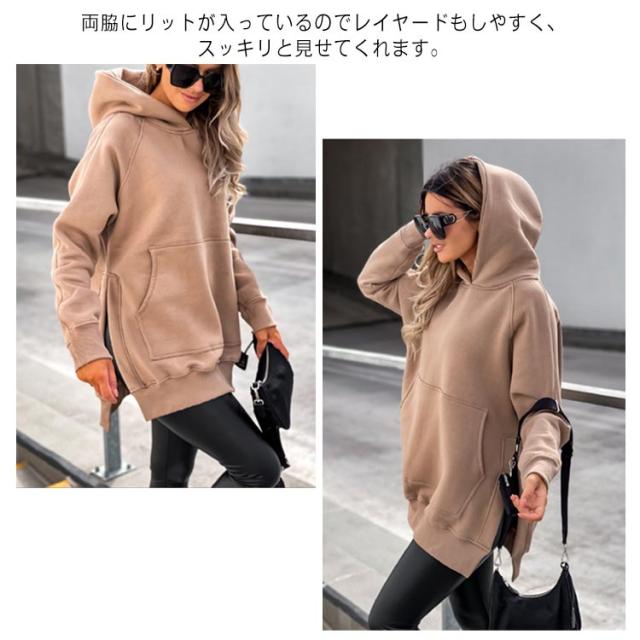 スリットパーカー プルオーバー フードパーカー ラグランスリーブ レディース 長袖 スウェット 長め カットソー レイヤード フードパーカー