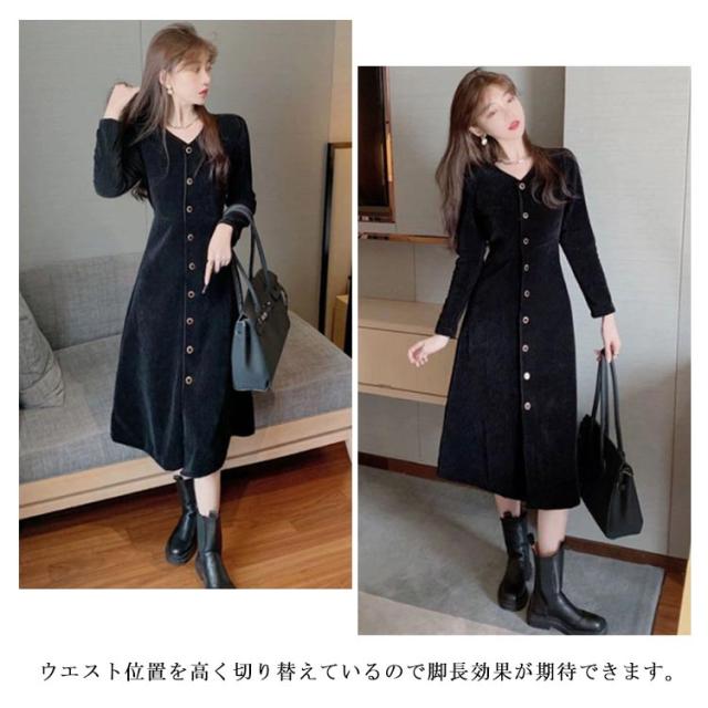 ロング丈 デイリー 長袖 タイトワンピース フロントボタン レディース 無地 Aラインワンピース フランス風 スリムフィット 20代 カジュアル Vネック 通勤 シンプル 大人 20代 30代 40代 【送料無料】ワンピース