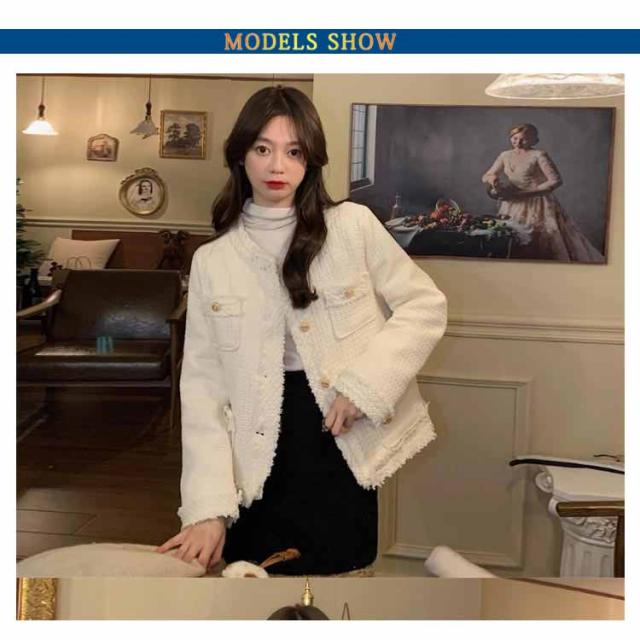 | いつもの服装をほんの少しだけ華やかなものへ導きます。 フェミニンなツイード仕立てのノーカラーツイードジャケット。 華やかなフォーマルシーンからセレモニースタイルまで幅広く着用できます。 入学・入園・七五三などのママスタイルのコーディネートに大活躍。 フリンジタイプは華やかながらもすっきりとした印象で、普段使いとしても活躍します。 | |
