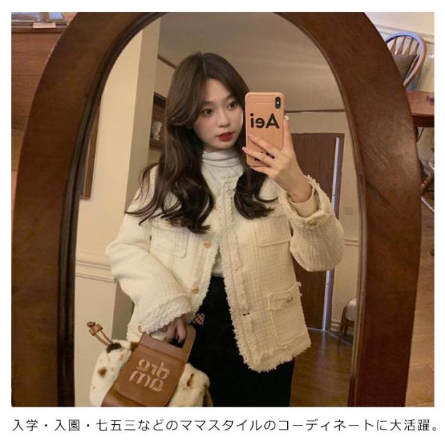 ツイードコートフォーマル ノーカラー お宮参り 入園式 レディース 長袖 結婚式 ショット丈 ジャケット 卒業式 レディース ツイードジャケット ライトアウター 七五三 服装 母親 20代 30代 40代 入学式