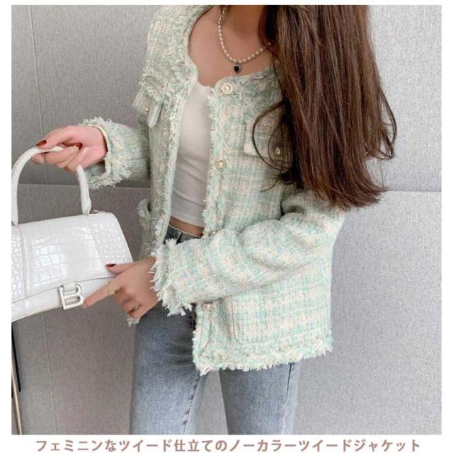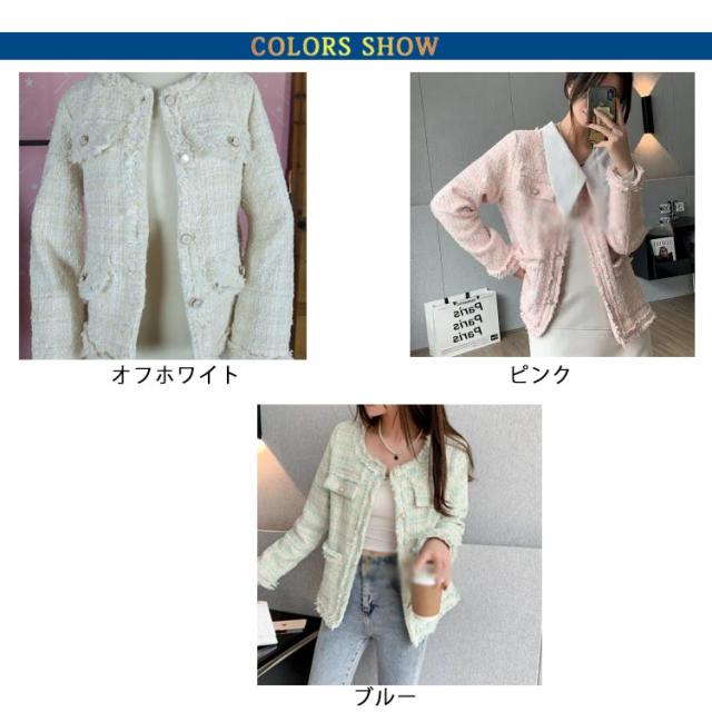 ツイードコートフォーマル ジャケット ノーカラー ライトアウター ツイードジャケット 入園式 長袖 入学式 結婚式 お宮参り 卒業式 レディース 20代 七五三 服装 母親 結婚式 30代 40代 フリンジ