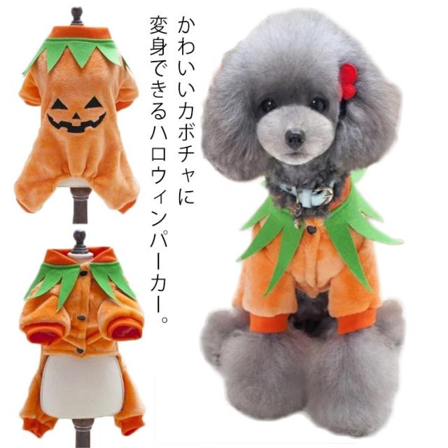 仮装 パーカー ハロウィン ペット衣装 チワワ ドッグウェア 犬服 秋冬 かぼちゃ 送料無料 つなぎ カバーオール カボチャ 可愛い 小型犬 犬の服 トイプードル コスチューム