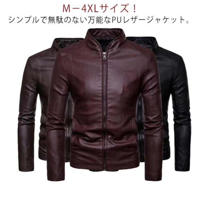 PU レザージャケット メンズ ジャケット フェイクレザー ブルゾン アウター スタンドカラー ジップアップ メンズジャケット 防風 秋 送料無料 冬 M−4XLサイズ 大きサイズ