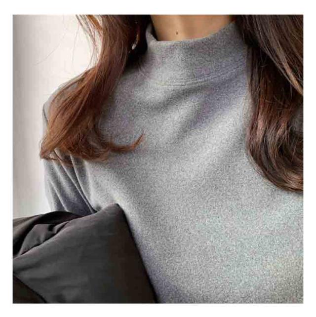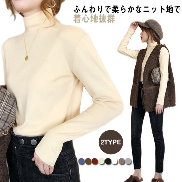 ハイネック 送料無料! ニット ロンT 長袖 体型カバー インナー 長袖カットソー トップス カットソー 無地 Tシャツ ネックカットソー 綿 無地カットソー タートルネック インナートップス コットン 大きいサイズ レディース