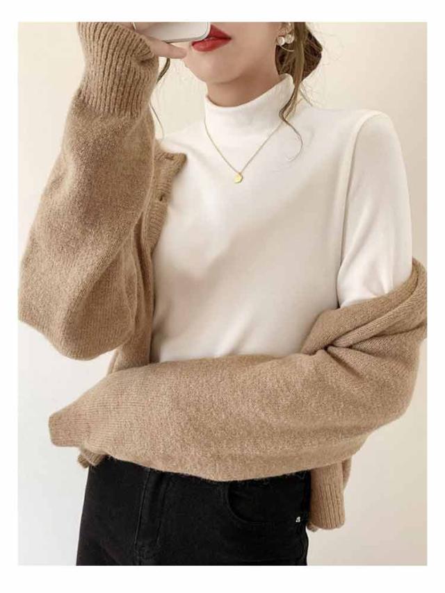 | ふんわりで柔らかなニット地で着心地抜群 ピタッと体にフィットするデザインで、体のラインをきれいに見せてくれ、とても暖かいです。 ストレッチ性に優れた素材なので、着心地ラクラク 肌に優しく、しなやかなさわり心地が魅力的 インナーとして着て頂いた時も、着ぶくれする心配はいりません。 春秋は一枚で、冬の寒い時期はジャケット、ベスト、カーディガン、コート等のインナーとして大活躍間違いなし。 | |