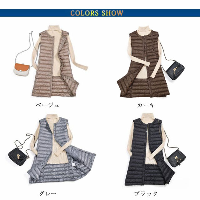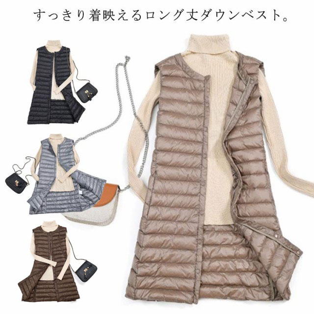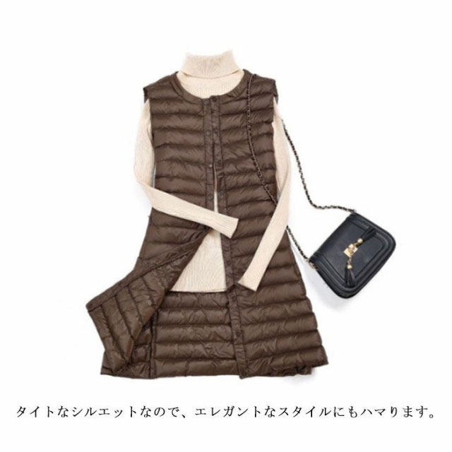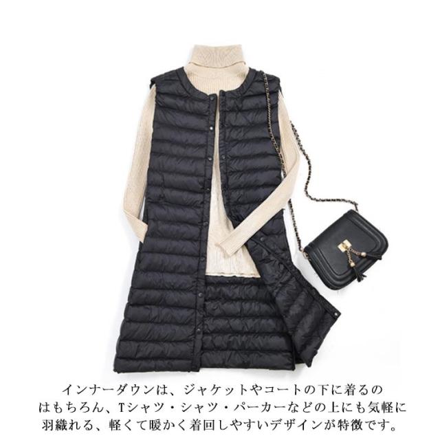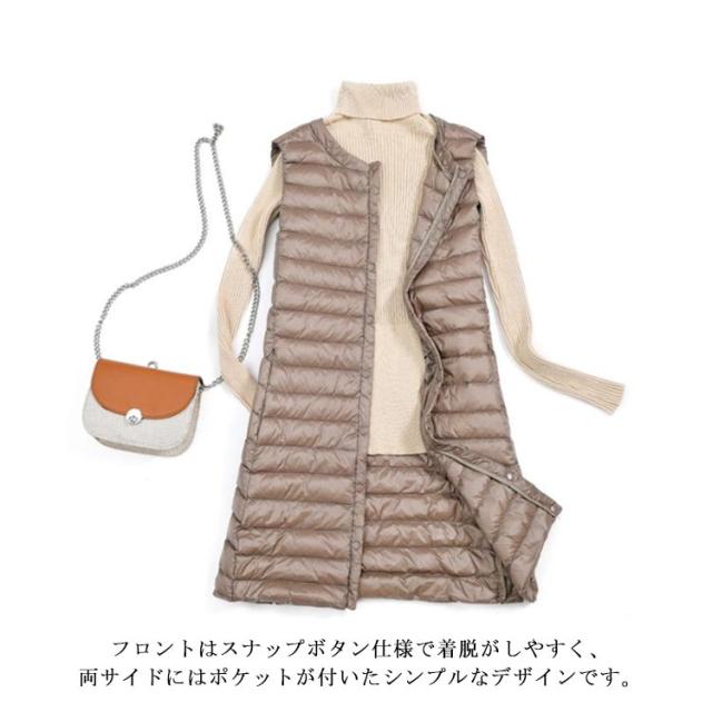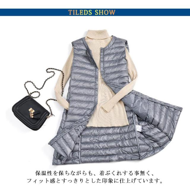レディース 40代 30代 ライトダウン ダウンベスト 秋冬 ロング丈 ベスト 軽量 スリム 薄手 ロングダウンベスト 防寒 保温 冬用 冬服 通勤 ポケット付き あったか 大きいサイズ 黒 【送料無料】インナー 20代 ブラック