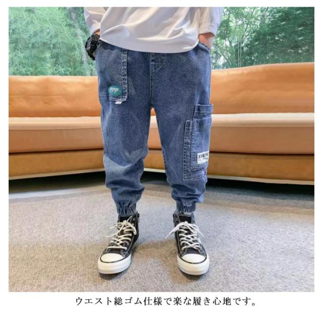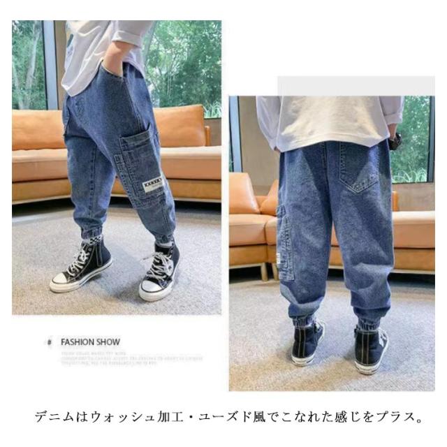 キッズ デニムパンツ ユーズド加工 男の子 子供服 春秋 ジュニア カジュアル ジーンズ ジーパン Gパン 長ズボン 男児 100 110 120 130 140 150 160cm サルエル カーゴパンツ こども服 おしゃれ ファッション 送料無料