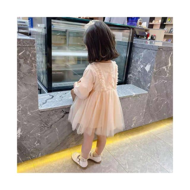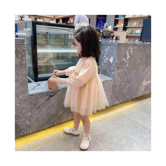 チュールワンピース フォーマルワンピース ドレス 女の子 ワンピース 丸襟 長袖 おしゃれ キッズ 子ども服 春秋 子供服 Aライン チュール ベビー ロングワンピース お姫様ワンピース 無地 シンプル カジュアル 結婚式