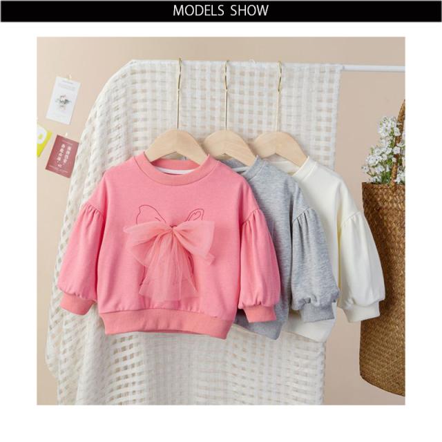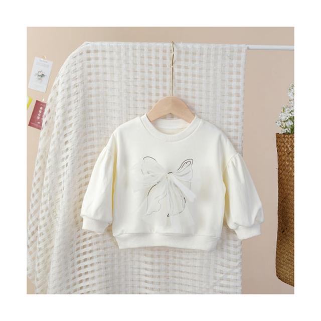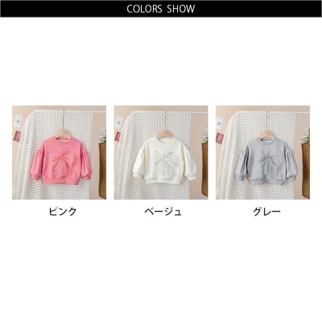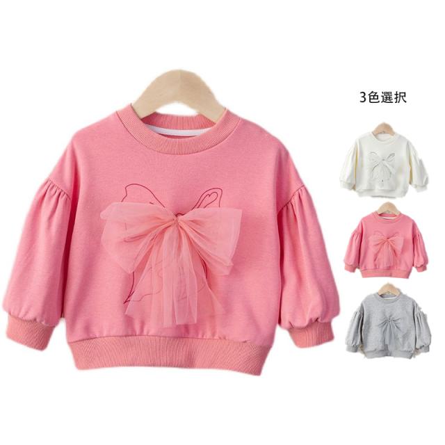 リボンブラウス フリルブラウス インナーブラウス リボン付き おしゃれブラウス キッズ 女の子 おしゃれ トップス シンプル トレーナー プルオーバー 無地 子供服 送料無料 おでかけ 春秋
