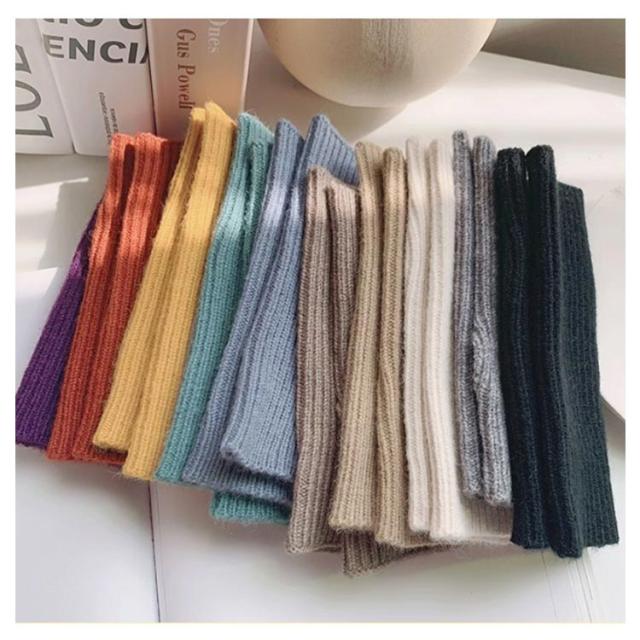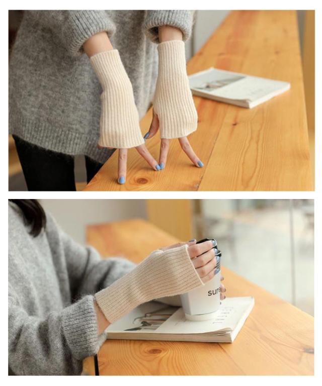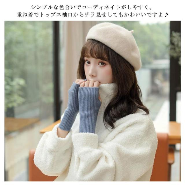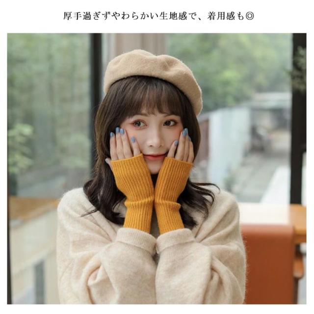 | お洒落なニット素材のハンドウォーマーです。 全長約18cmで、手首までふんわり包みこみます。 厚手過ぎずやわらかい生地感で、着用感も◎ 指穴があることで、なんだかとっても使いやすい! 着用したままスマホ操作やPC操作など、指先を使う作業時にもオススメです。 シンプルな色合いでコーディネイトがしやすく、重ね着でトップス袖口からチラ見せしてもかわいいですよ♪ | |