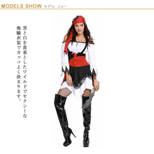 | 【ワイルド&セクシーな女海賊コスプレ】黒と白を貴重としたワイルドでセクシーな海賊衣装でカッコよく決まります。赤のアクセントがセクシー。ワンピースなので簡単に海賊に変身できます。ハロウィン、クリスマス、パーティなどに。 【なりきり3点セット】海賊のワンピと赤いウエストサッシュとバンダナの3点セットです。これだけで女海賊の雰囲気抜群。これさえあれば海賊コスプレできちゃいます。これで女海賊になりきってイベントを盛り上げましょう。 【赤がアクセント】オフショルデザインと黒のレースがセクシー。赤いバンダナがワイルドで、腰巻がさらにセクシーさをアップ。赤をアクセントにしたオシャレで統一感があります。 【タトゥーシール付】貼って剥がせるタイプのタトゥーシールもついてます。バタフライをモチーフにしたオシャレなシールです。海賊のコスプレに合わせると、さらに完成度もあがります。 | |