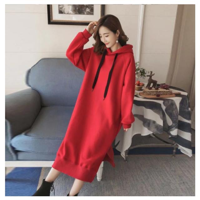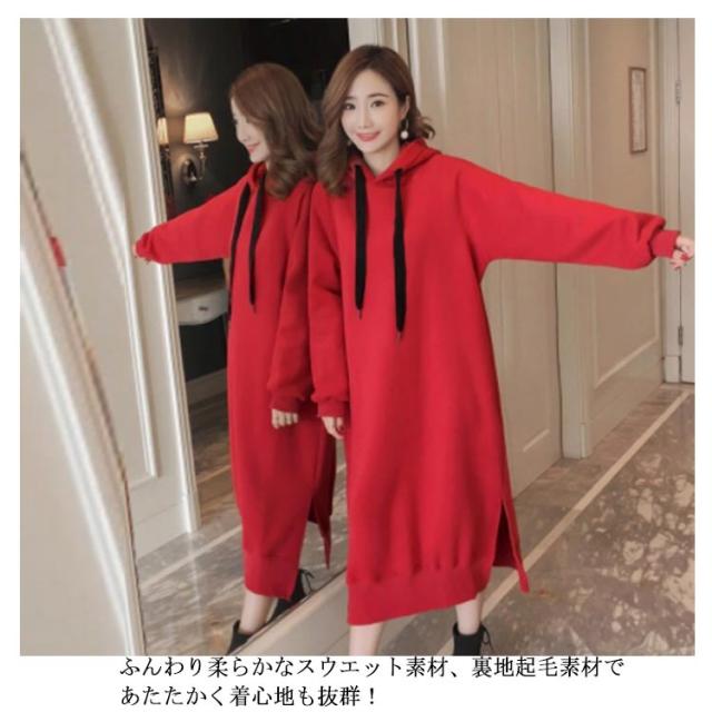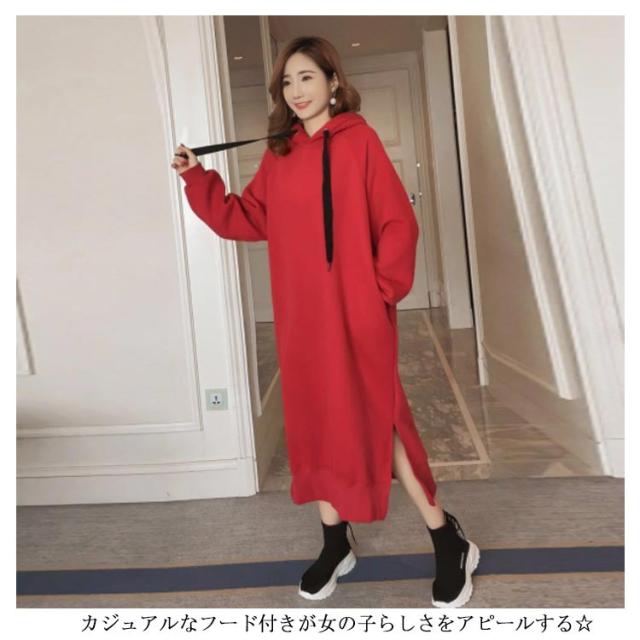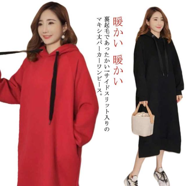 ワンピース ゆったり パーカーワンピース 裏起毛であったかい!ロングパーカーワンピース フード付き パーカワンピ スリット ロングワンピース 裏起毛 秋冬 暖かい マキシワンピース
