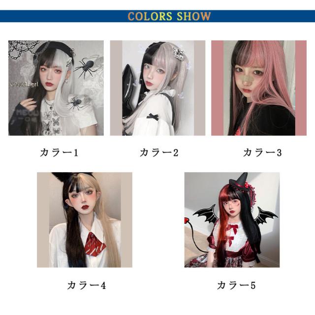 ハロウィン レディース コス コスプレ 女性 フルウィッグ エクステ バイカラー ウィッグ かつら ストレート 軽量 ツートン ミディアム ミックス 小顔効果 自然 シースルーバング セミロング パーティー イベント ロングウィッグ