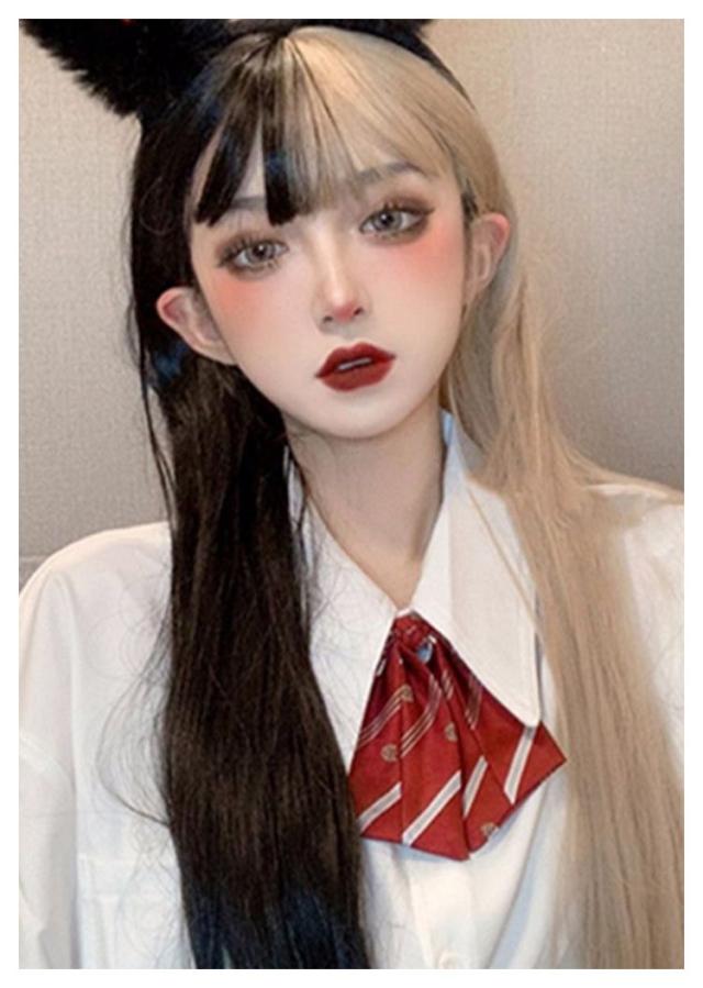 | 2つのカラーを組み合わせた個性溢れるロングウィッグです。 2つの表情を持つハーフツートン。 前髪は、ちょっぴり重めのぱっつんバング。 絶妙なバランス効果で、顔まわりは華やかな印象に♪ ハロウィン、クリスマス、お祭り、文化祭、余興などなど様々なイベントシーンで大活躍。 | |