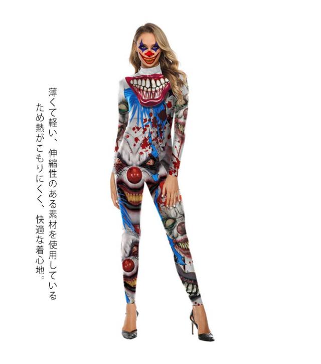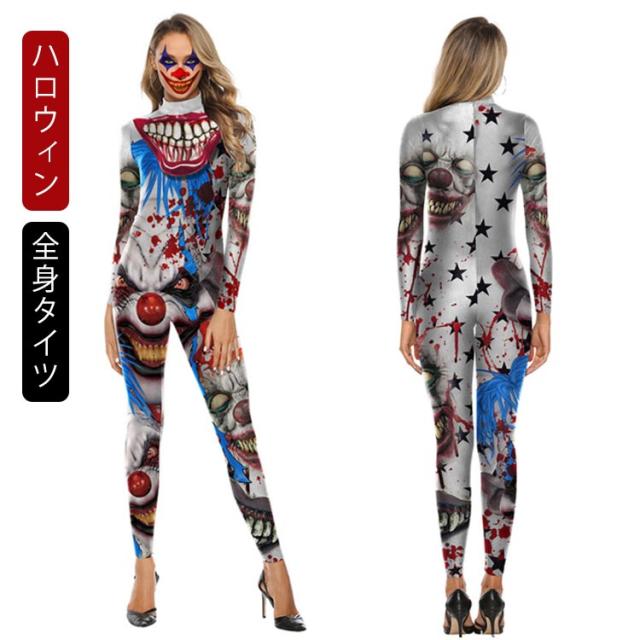 ピエロ ハロウィン レディース フィット コスチューム ハロウィン 全身タイツ 衣装 コスプレ 変装 仮装 コスプレ 女性 大人
