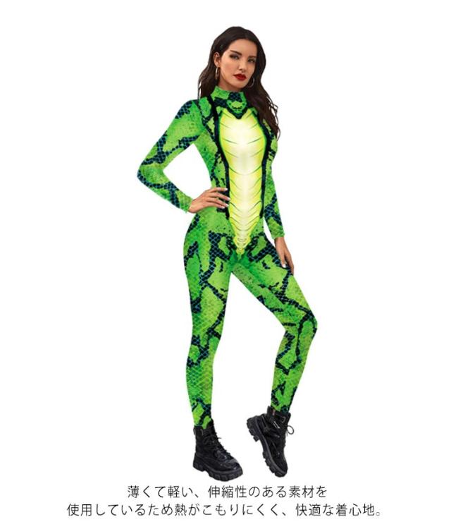 大人 コスプレ 衣装 プリント ハロウィン コスチューム ヘビ ヘビ柄 全身タイツ へび 服 変装 仮装 蛇 3D コスチューム 女性 コスプレ
