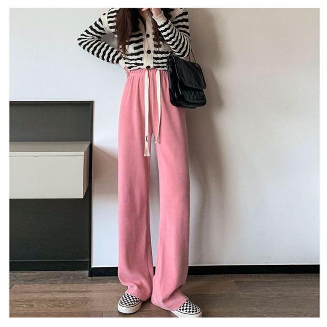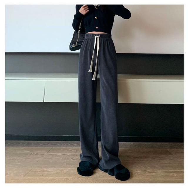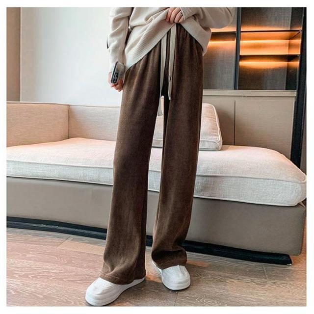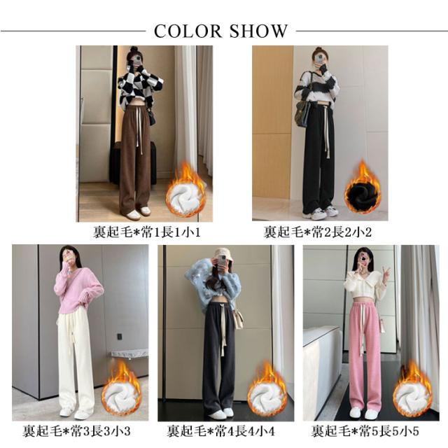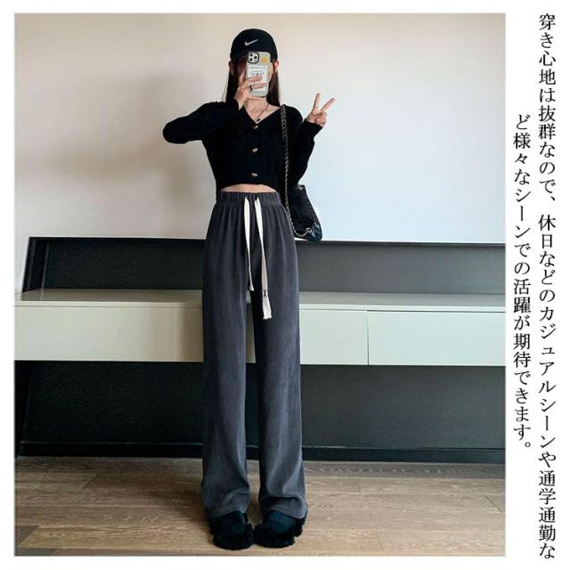 シンプル カジュアル ワイドパンツ コーデュロイ ボトムス レディース 可愛い おしゃれ 流行 短身 選べる丈 着回し 大人可愛い ウエストゴム ロング S-3XL!裏起毛