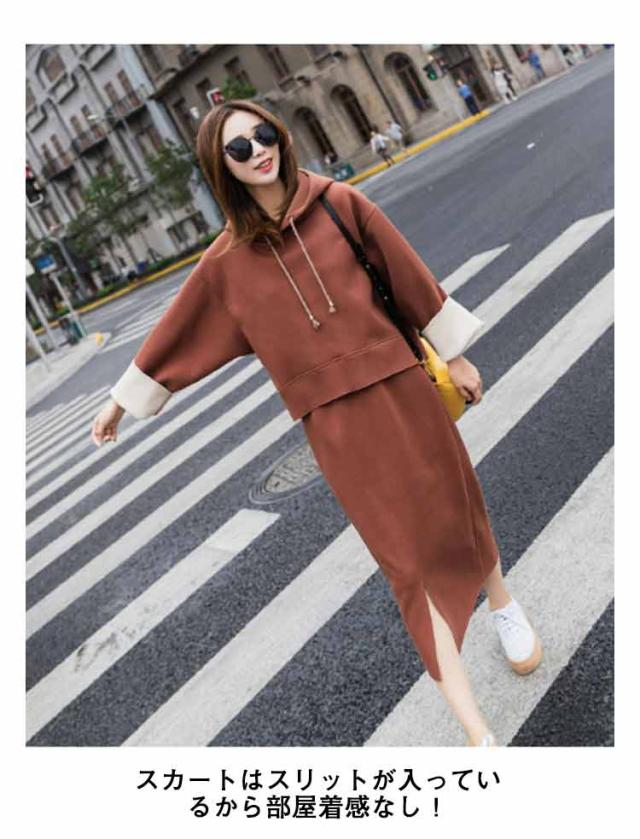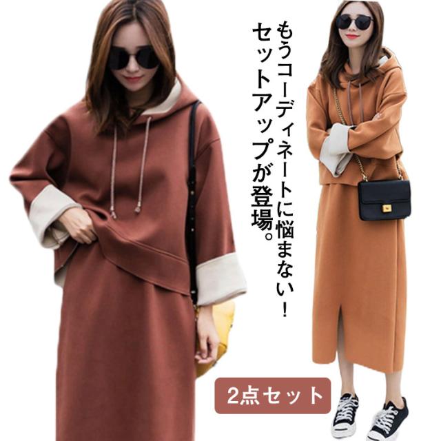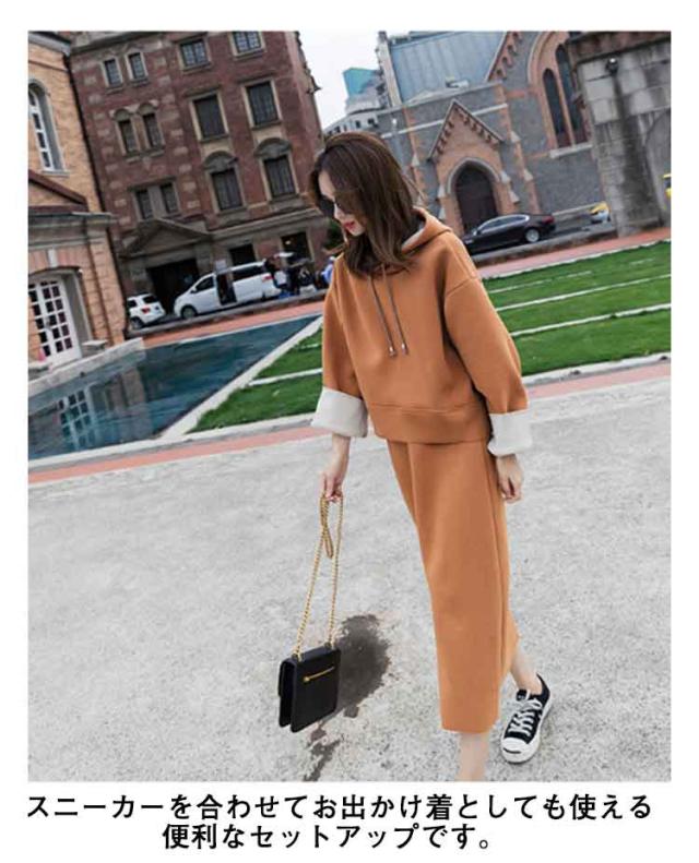 トレーナー レディース パーカー ジャージ 長袖 セットアップ 上下セット 部屋着 ロングスカート 秋物 スウェット タイトスカート 秋 お洒落 着痩せ マキシ丈 スポーツウェア パジャマ カジュアル 春物 春 ルームウェア 普段着 スカート