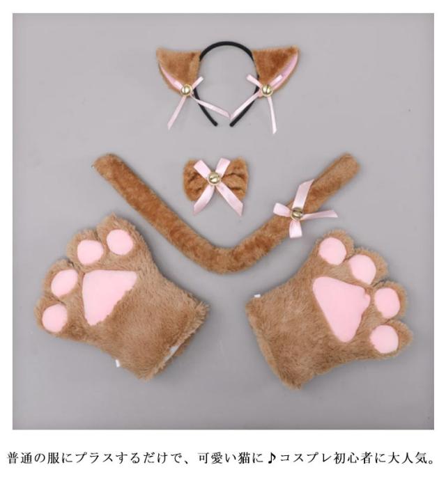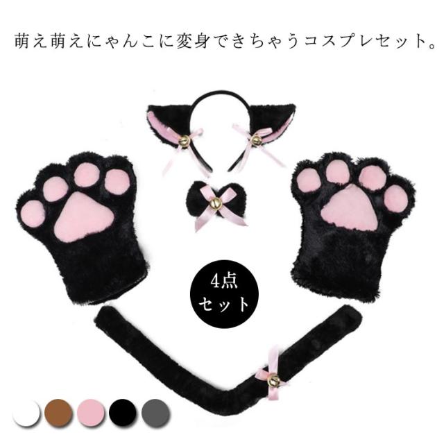 しっぽ 首輪 カチューシャ 舞台 萌え萌え 猫耳 4点セット 肉球手袋 ハロウィン コスプレ ねこみみ 文化祭 仮装 鈴 セクシー 可愛い 猫コスプレ