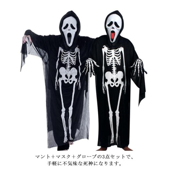 全身仮装 マスク 仮装 大人 骸骨 子供 スケルトンゴースト お化け 悪魔 コスプレ ホラー マント 手袋 死神 ハロウィン コスチューム イベント パーティ 肝試し