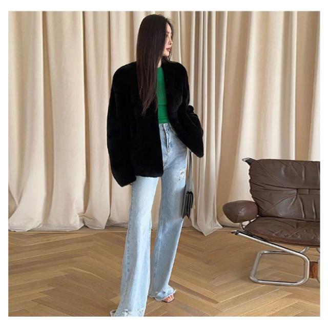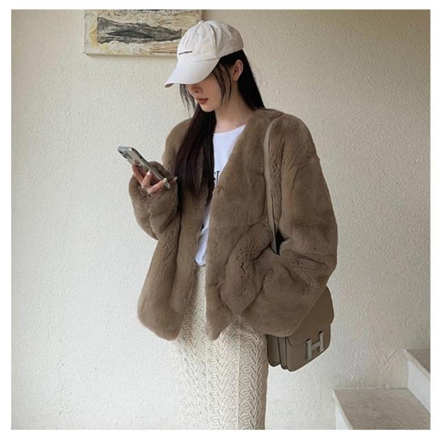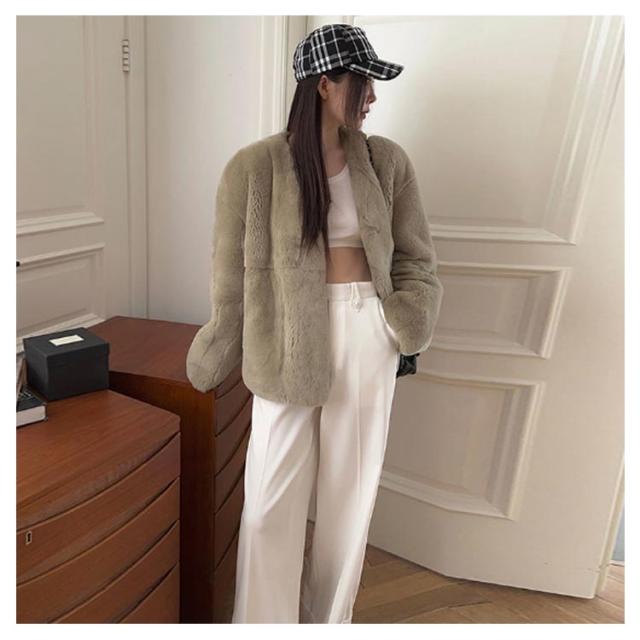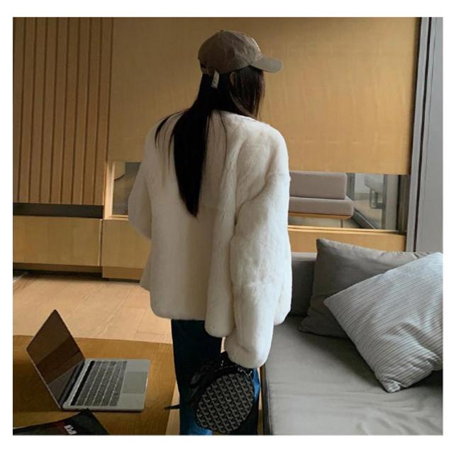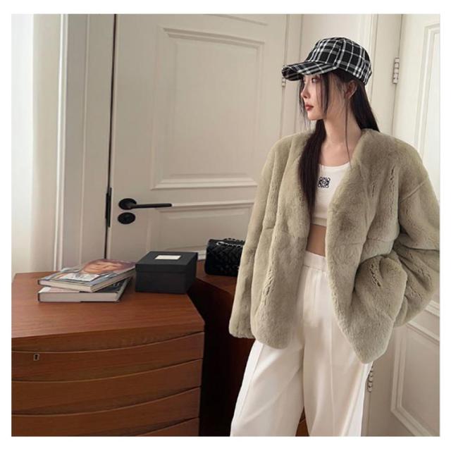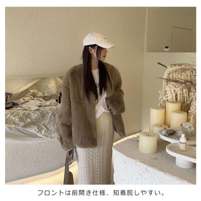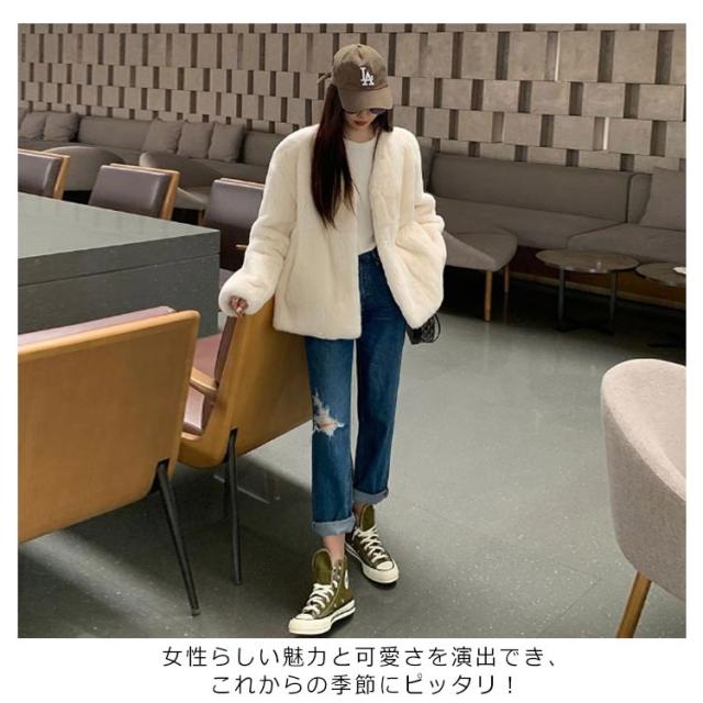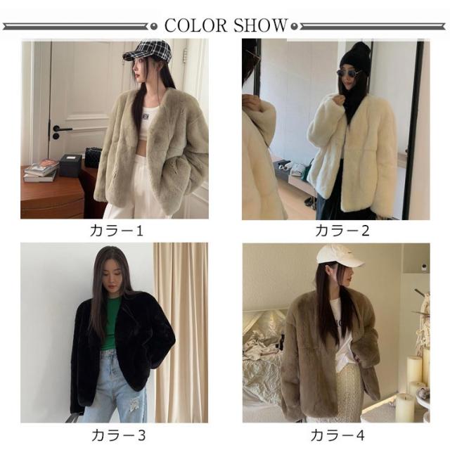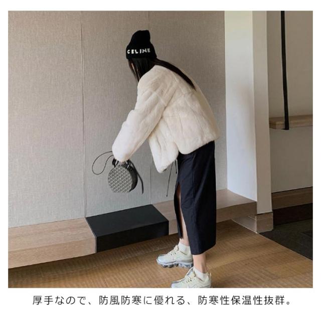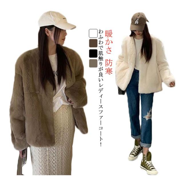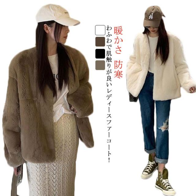 ファーコート レディース 毛皮コート 披露宴 ノーカラー ラビット風フェイクファー アウター レディースジャケット 秋冬コート ブルゾン 体型カバー 暖かさ 防寒 ふわふわ カジュアル M エレガント S ロングコート