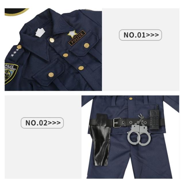 | かっこいい警察官のコスチュームで、ハロウィンの人気定番の衣装となっております。 7点セット いつの時代も、小さな子に人気な職業は見た目がカッコイイ!ユニフォームや道具などの”見た目”に特徴がある仕事です。 その”見た目”に拘った衣装を身に着けた途端にテンションを上げてくれます 子供たちが憧れの警察官なりきのコスチュームです。イベント時に目立つこと間違いなしです。 ハロウィン、仮装パーティー、クリスマスパーティー、忘年会、文化祭、舞踏会など、様々な場面で活躍できますように。 | |